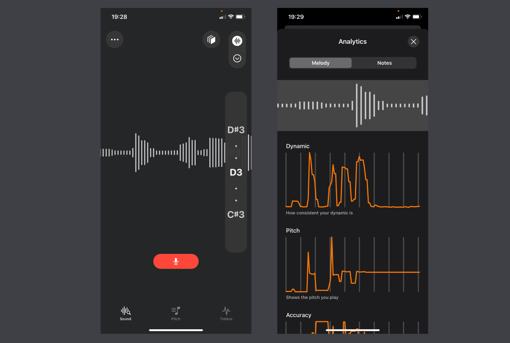 Just like many other music-related apps, we provided the pitch detection function. And of course, another reason is that musicians are familiar with, and cares the pitch a lot.